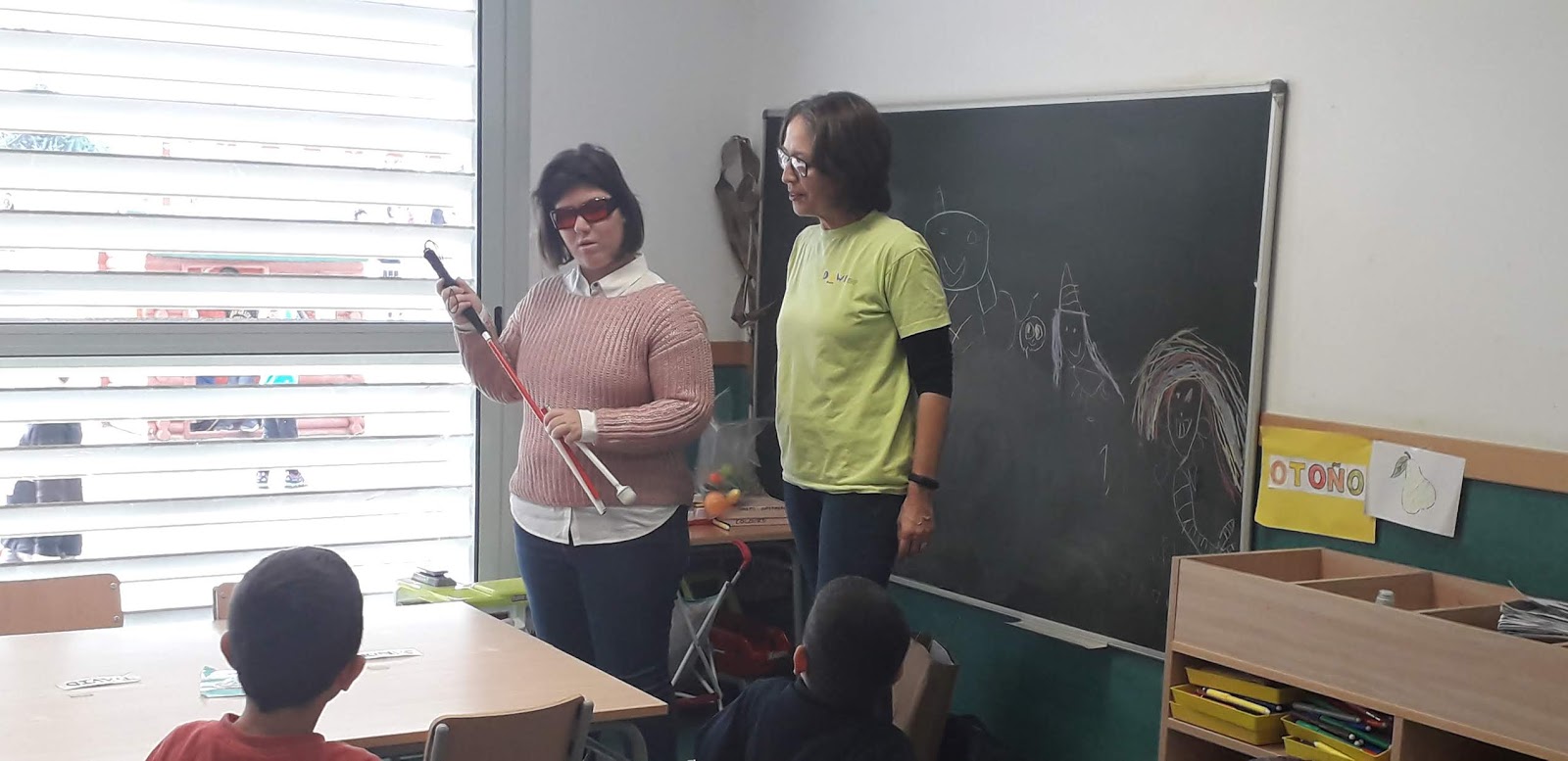NOS ENSEÑARON EL LIBRO CON EL QUE APRENDIÓ A LEER BRAILLE, LAS COSAS QUE PUEDE HACER Y LO QUE NO PUEDE HACER, NOS HABLÓ DE SUS AFICIONES, QUE SON: PINTAR, PATINAR Y ESQUIAR.